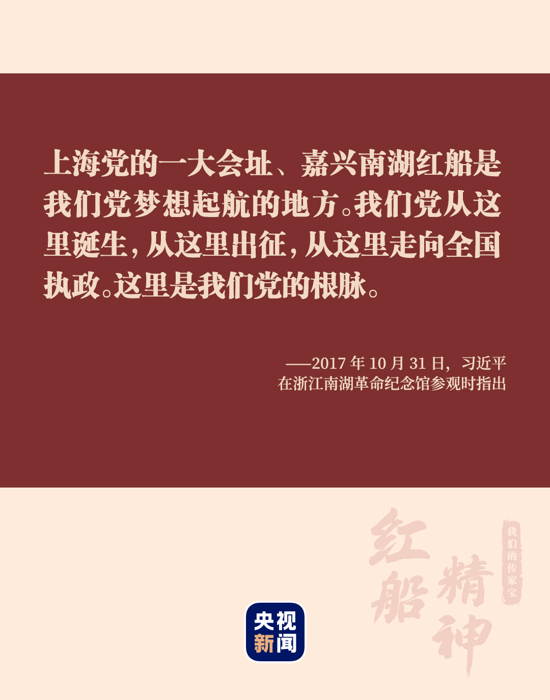 在浙江工作時(shí),習(xí)近平為南湖革命紀(jì)念館奠基。2005年6月,他在文章《弘揚(yáng)“紅船精神” 走在時(shí)代前列》中對“紅船精神”作出概括:“開天辟地、敢為人先的首創(chuàng)精神,堅(jiān)定理想、百折不撓的奮斗精神,立黨為公、忠誠為民的奉獻(xiàn)精神?!?/span>
