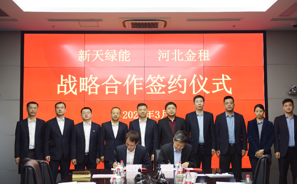 日前,河北省金融租賃有限公司(以下簡稱“河北金租”)與新天綠色能源股份有限公司(以下簡稱“新天綠能”)簽署戰(zhàn)略合作協(xié)議,并就深化合作展開深入交流。河北金租黨委書記、董事長徐敏俊,新天綠能黨委書記、總裁梅春曉及雙方相關(guān)業(yè)務(wù)負(fù)責(zé)人出席簽約儀式。