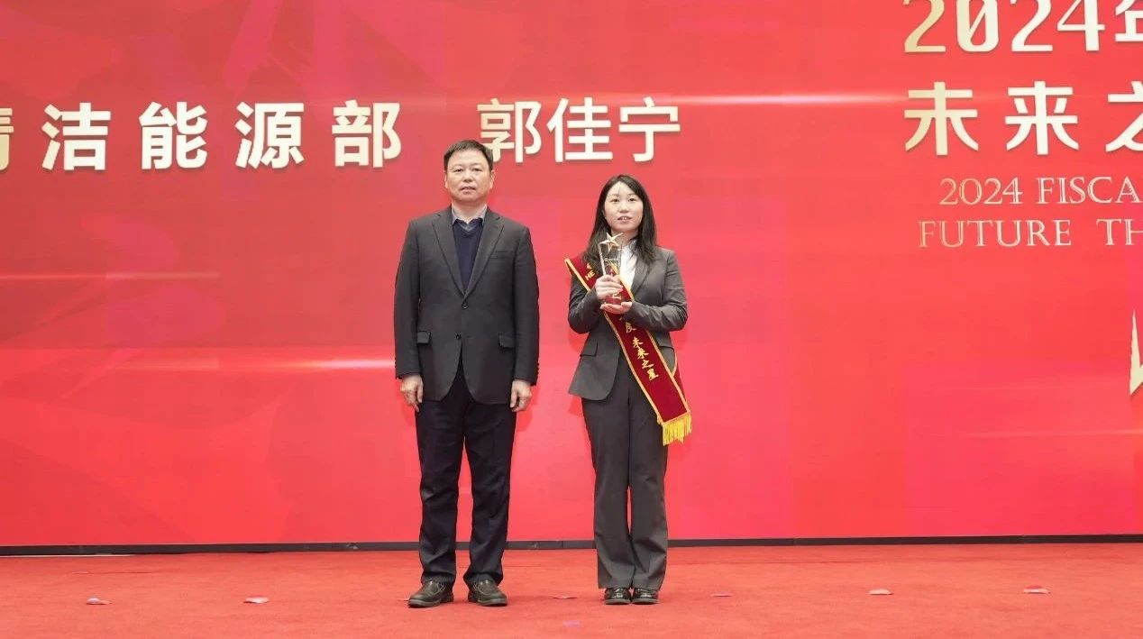 ▲監(jiān)事長楊應(yīng)群(左)頒發(fā)未來之星獎(jiǎng)