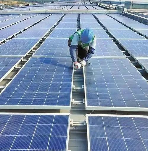 ▲運(yùn)維人員正在檢查站房屋面光伏組件